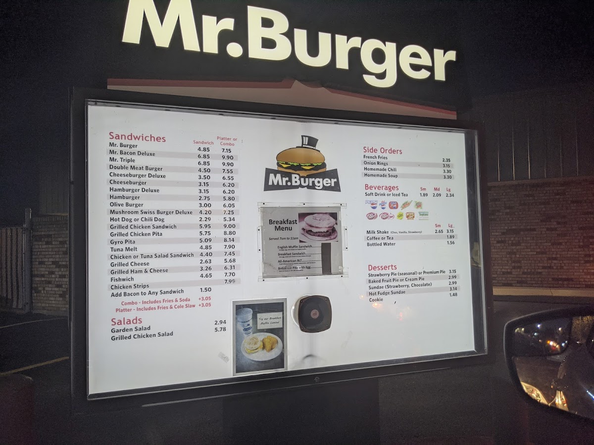 “ I had The Mr. Burger platter. Best Burgers Around! I don't care who says what or what you have read. CLASSIC food, service & Atmosphere. If I'm hungry & there is one around, please take my money, With a smile. ”